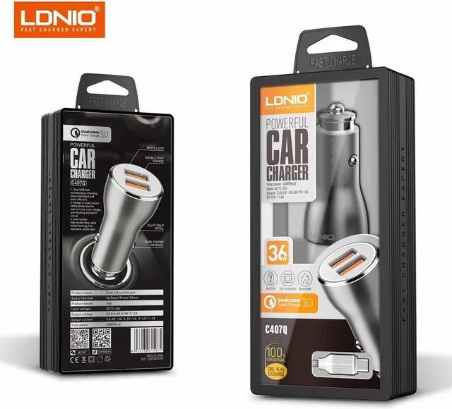 LDNIO 36W QC 3.0 PD Car Charger + MicroUSB Cable Included