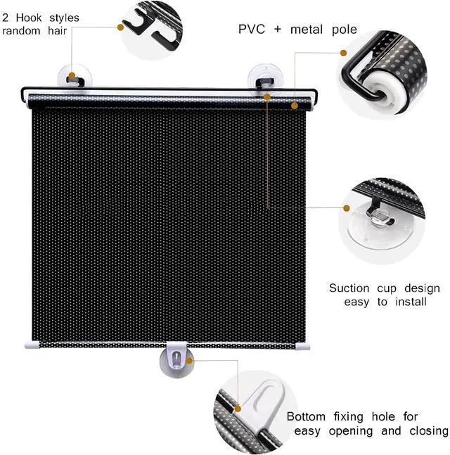 This retractable window sunshade offers versatile sun protection for your car, home, or office. Constructed from high-quality, waterproof PVC fabric, it effectively blocks heat and harmful UV rays, helping to prevent interior aging and maintaining a cooler, more comfortable environment. The odorless and durable design is easy to clean. Beyond sun protection, it also helps reduce external noise and glare while enhancing privacy. Its adaptable design makes it suitable for various windows, providing reliable year-round sun control.
