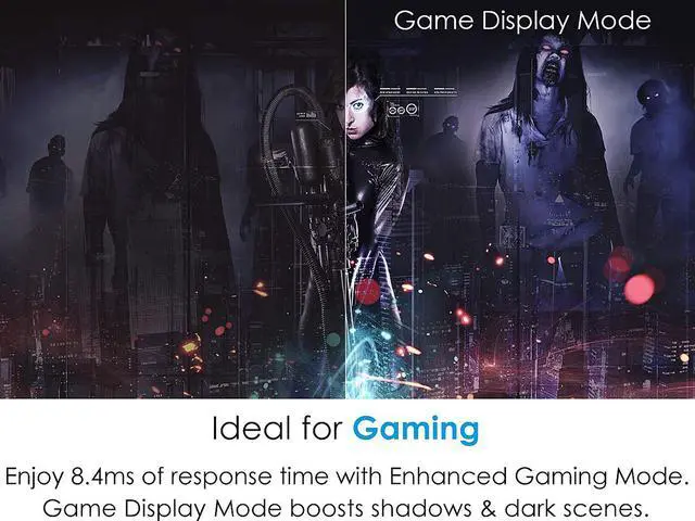 Enhanced Gaming Mode combined with a 120Hz refresh rate delivers lightning-fast input response times of 8.4ms, perfect for fast-paced and competitive console or PC gaming. Game Display Mode provides a visual advantage by boosting shadows and dark scenes for greater visibility of impending obstacles.