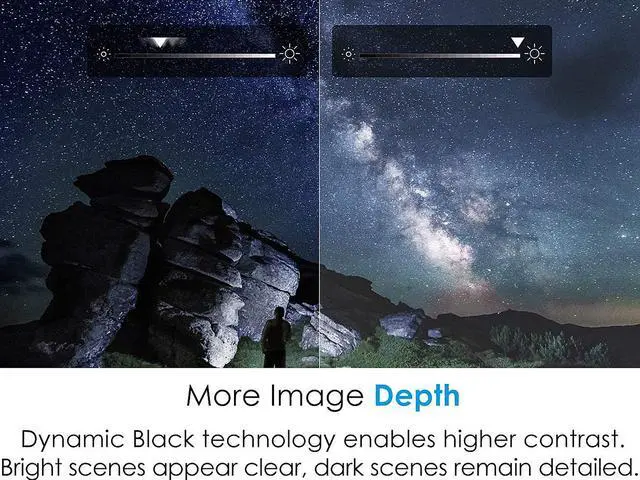 This feature gives more depth to your image by smoothly adjusting the lamp output to create a stunning high contrast ratio. Bright scenes appear crisp and clear, while dark scenes remain detailed with deep blacks and exceptional light and shade detail.
