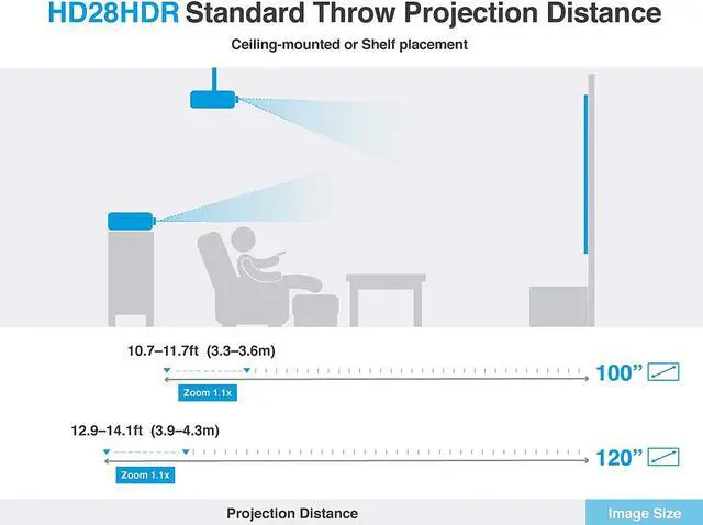 Designed from the ground up for all gaming, the Optoma HD28HDR delivers an unmatched gaming experience. PC and console gamers can take advantage of the ultra-fast 120 Hz refresh rate for blur-free visuals with outstanding smoothness. Enhanced Gaming Mode reduces input lag down to 8.4ms at 1080p 120 Hz for lag-free input response. Whether you're a PC or console gamer, the Optoma HD28HDR delivers incredible gaming on the huge screen.