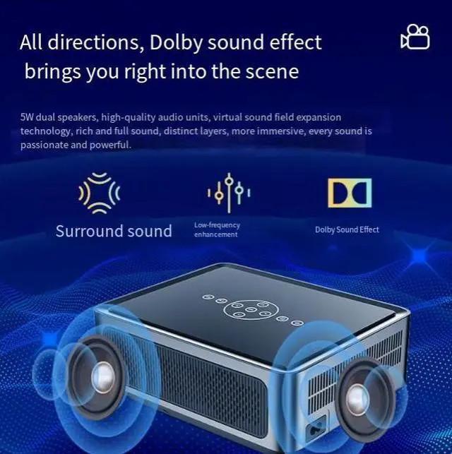 Experience stunning 8K-ready performance with this Auto Focus Android Projector. Featuring 1080P native resolution, zoom lens, Android 9.0, and dual speakers, it's perfect for home theater, office presentations, and classroom teaching.