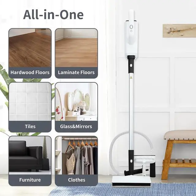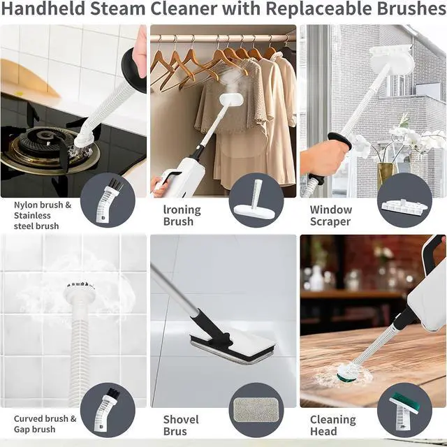 • Versatile Cleaning Heads: Use included accessories like a mop head, garment steamer, and brushes for floors, windows, and fabrics, providing comprehensive cleaning solutions.