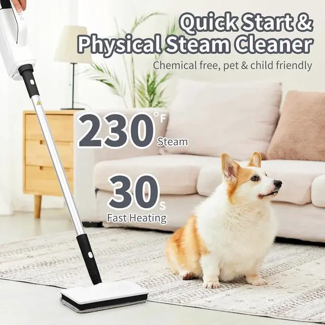 • Ergonomic Design & Safety: Enjoy comfortable cleaning with a lightweight design and swivel handle. Features like low water alarm and dry-boil protection ensure safe operation.