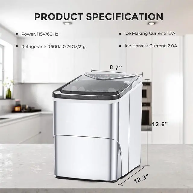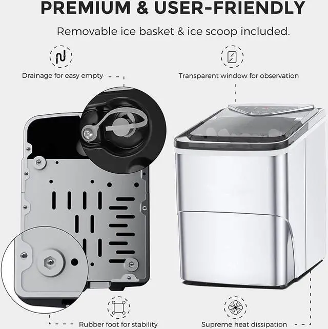 Countertop Ice Maker Machine: Our home ice maker is for all your ice-making needs. This countertop Ice maker is easy to set up, perfect for your above or below ground bar, kitchen, or office pantry.