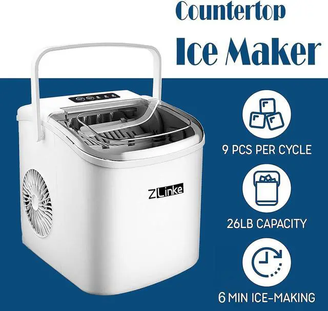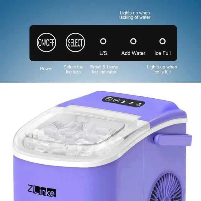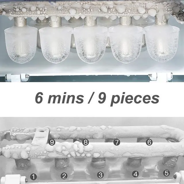 Simple to Use and Clean: With a simple control panel, just simply add water, plug it in, press the power button and let it be, no more complex settings required. Indicator lights for "ICE FULL" or "ADD WATER" will alert you in time. Big clear view window for easy observation. No installation and plumbing required. Easy to clean with a simple wipe.