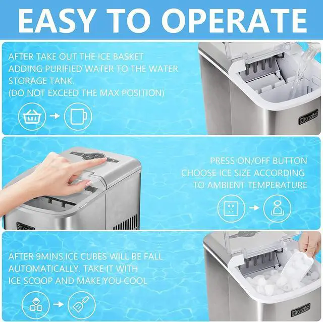 [QUIET & SATISFICATION TIPS] The ice makers countertop grabs attention with its refrigeration system which features low noise (50db) and energy saving. If something goes wrong, contact us at the first time for support and replacement