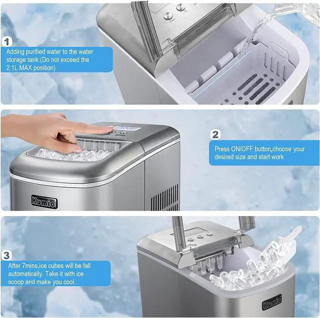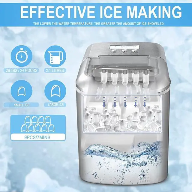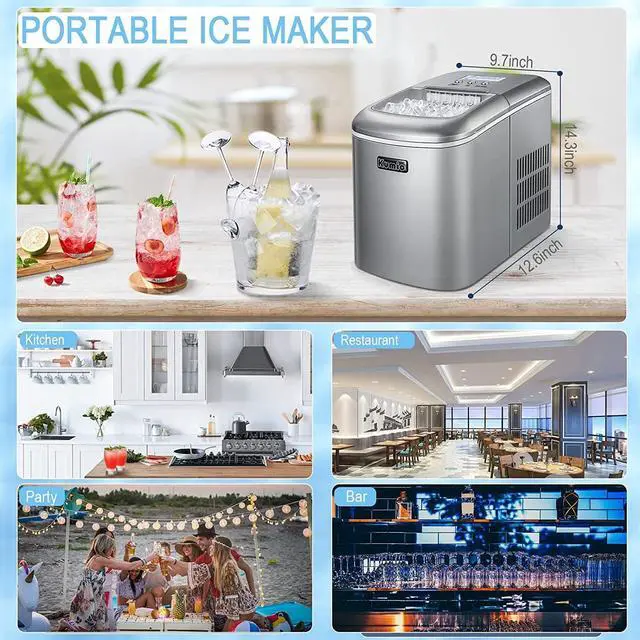Sizes: S/L) in 7-8 minutes a cycle and 26 lbs (12kg) per 24 hours, 2.1L large capacity ensure you can enjoy enough fresh ice on Party, family gatherings, RV camping, and even road trips