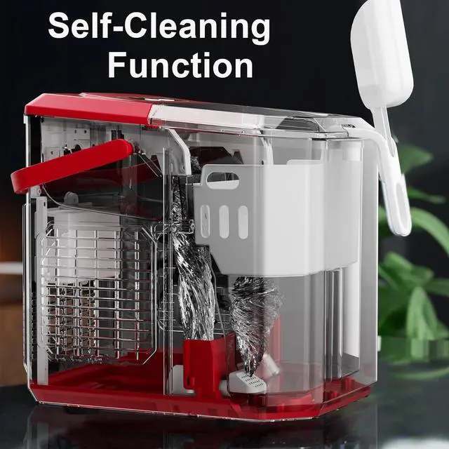 Automatic Cleaning FZF self-cleaning ice machine features an efficient automatic cleaning function (taking care of your hands, no need to wash them by hand). Press the "On/Off" button for 5 seconds prior to use, and enjoy healthy, hygienic ice cubes as the portable machine cleans itself.