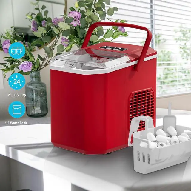 Fast Ice Making in 6 Mins FZF ice maker countertop has been upgraded with a new compressor, enabling it to produce 9 ice cubes in just 6 minutes and generate up to 26.5 lbs of ice per day. Meet the daily needs of a family of 5 or the need for ice cubes for a small party.