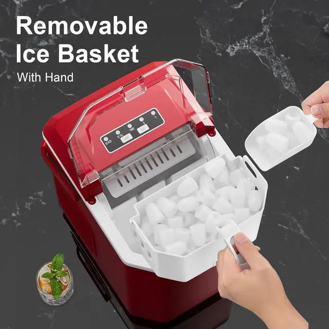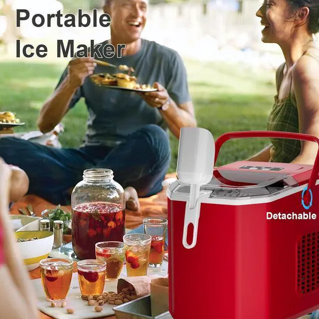 Convenient & FriendlyOur ice maker machine is easy to carry if you are planning to go on an outdoor trip. Portable ice maker has a removable ice basket, ice scoop and ice bag. During RV trip, you can lift the ice basket by its handles and carry the ice to a makeshift outdoor table. The ice bags holds excess bullet ice for you, which you can store in a freezer for later use.