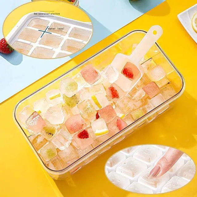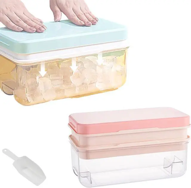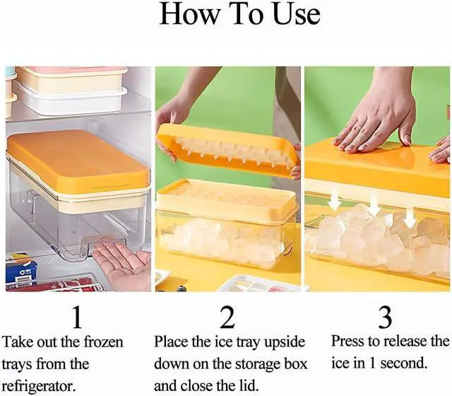Ice Maker New Generation- Ninyoon ice cube tray is made of hard plastic and are easier to release ice than silicone molds. After taking the ice tray out of the freezer, flip the tray over and gently press the lid, 32 ice cubes will release within 1 second (2 Tier for 64 cubes).