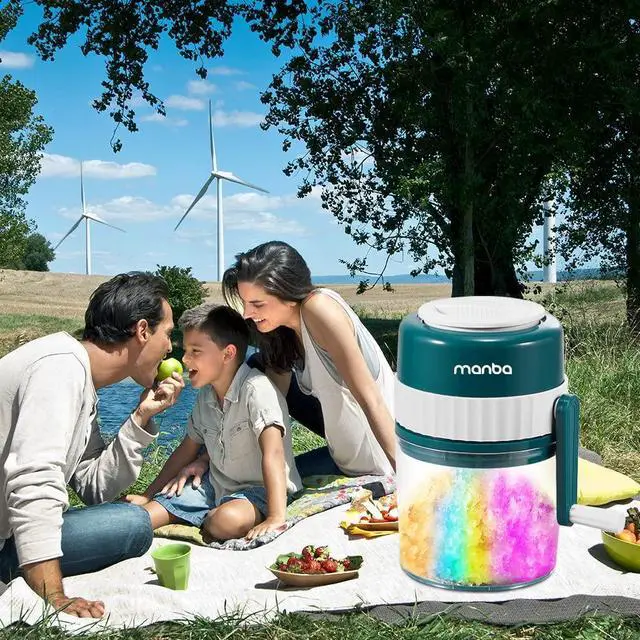 Easy: Easy to Use, Easy to Clean, Easy to Carry and Easy to Store. Portable Manual Hand Crank Operation Design helps you get shaved ice, snow cones for funny drinks even outdoors Without Electricity