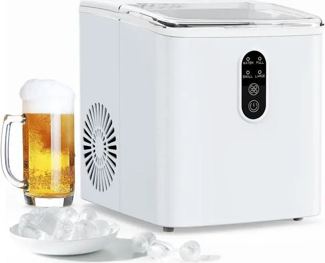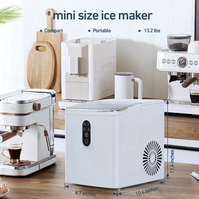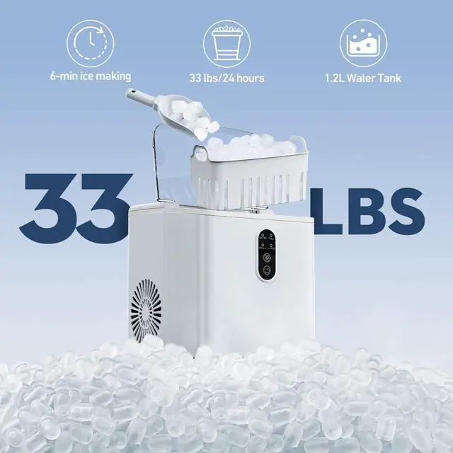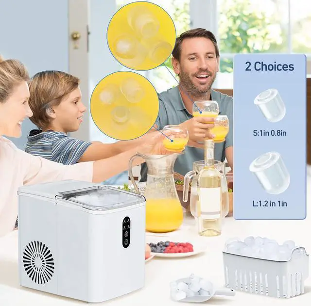 6 Mins Chewable Ice MakingMYETASSER bullet ice machine countertop can produce fresh bullet-shaped ice cubes in 6 minutes with two different sizes (Can be selected manually). The ice cubes are soft, chewable.