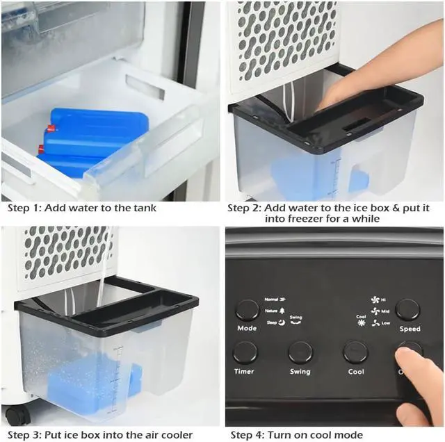- Easy to Operate - Simply add water into the 17L water tank and put the ice boxes in the tank for better cooling effect, then turn on the air cooler; Comes with a remote control for easily adjusting the mode, speed, function and timer while you are resting in bed
