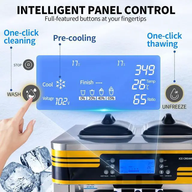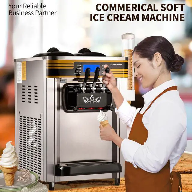 VEVOR Commercial Ice Cream Maker, 22-30L/H Yield, 2350W Countertop Soft Serve Machine w/ 2x6L Hopper 2L Cylinder LCD Panel Puffing Shortage Alarm, Frozen Yogurt Maker for Restaurant Snack Bar, Silver3 Flavors & 3 Distinct NozzlesHopper onto Another LevelBuilt-in Puffing TubesOne-click CleaningThoughtful DetailsPerfect for Various PlacesHopper Capacity: 1.6 Gal / 6 L,Refrigerant: R410a & R134a,Model: BJH288SR2JB-Y,Product Weight: 202.8 lbs / 92 kg,Cylinder Capacity: 0.5 Gal / 2 L,Compressor: 1050W,Ice Cream Output: 5.8-7.9 Gal / 22-30 L per Hour,Voltage & Power: 110V / 60Hz; 2350W,Product Dimensions: 29.3" x 21.3" x 34" / 74.5 x 54 x 86 cm