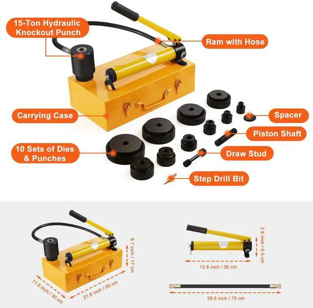 : VEVORVEVOR 15 Ton Hydraulic Knockout Punch Driver Kit Hole Tool 1/2"-4" with 10 Dies