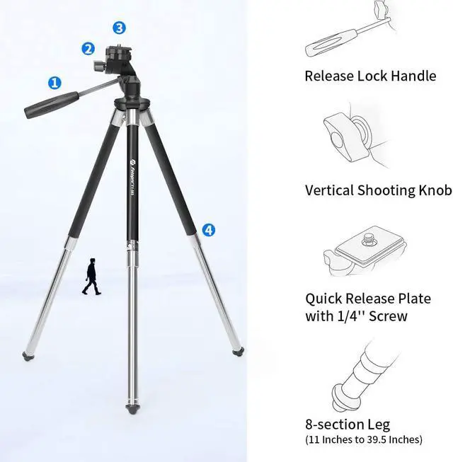 ?Pocket SizeWeights 0.85 lb(0.39 kg), the folded height of tripod is only 11"/28cm, small enough to store in your backpack. Lightweight tripod comes with a durable tripod bag, is easy to carry while traveling, climbing, and camping, etc.