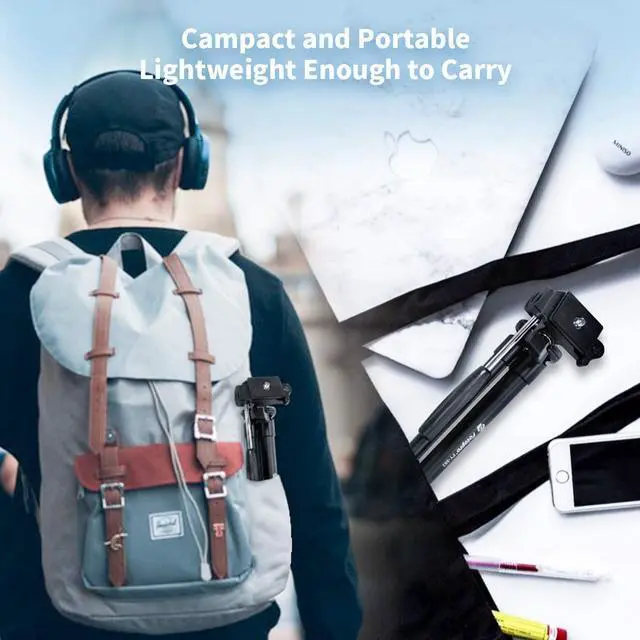 ?Multi-angle Adjustable HeadIt allows both vertical shooting and horizontal shooting for taking unique photos. Also this portable tripod is suitable for YouTube blogger who can use the Bluetooth Control to start/stop recording.