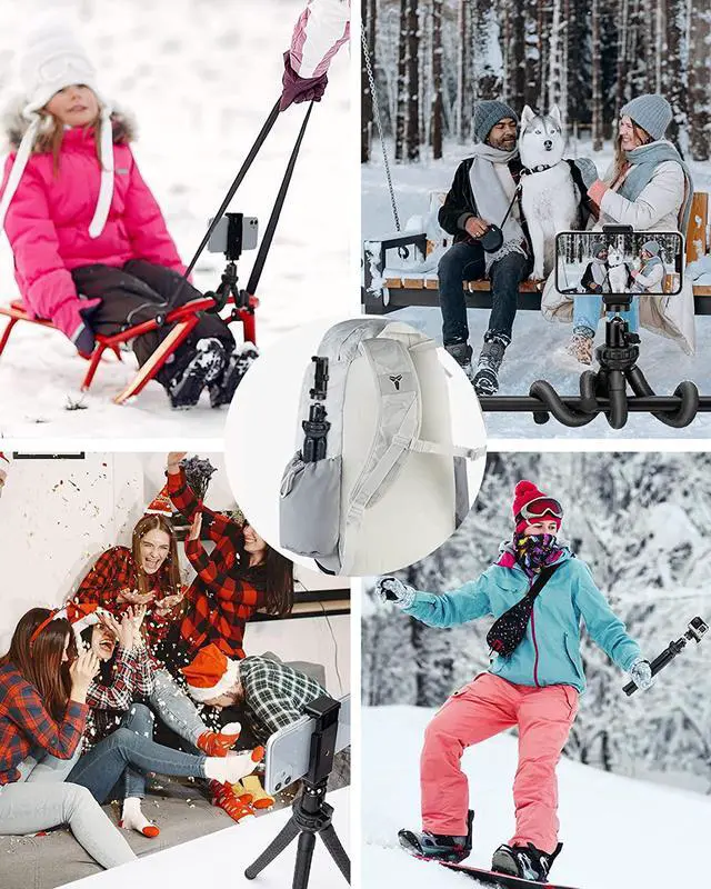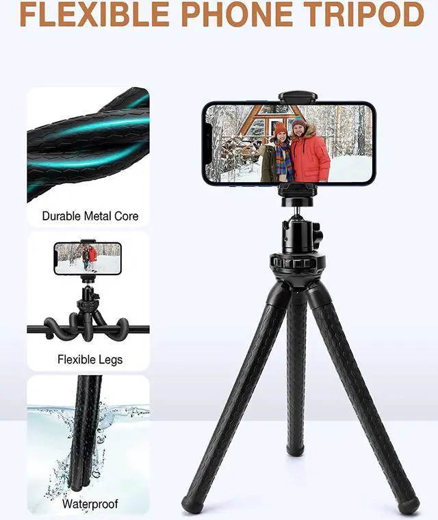 Flexible Tripod Legs- Phone tripod can be twisted into any shape, wrapped around trees,shelves, chairs, railings or rearview mirrors. It can be bent into selfie tripod, handheld stabilizers, or shoulder mounts by adjusting the flexible legs. Perfect for impromptu shoot, or quick time-lapse video