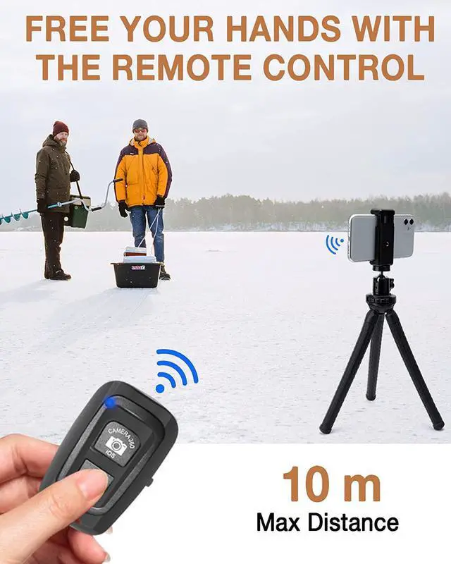 Free Your Hands - Remote control is compatible with Android and IOS system, enables you to shoot from distance (Max: 10m) when using small tripod to take group photos. Easy to choose your favorite position and pose for taking selfies, filming, vlogging and video.