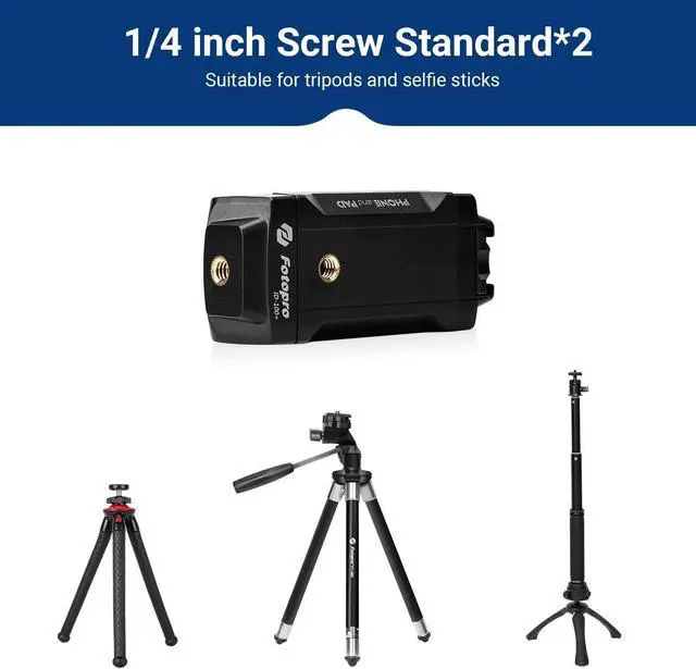Universal 1/4'' ScrewEquiped with univeral 1/4'' screw, enables you connect this mount with most of tripod easily, especial Fotopro tripod, so you can diy your special tripod.