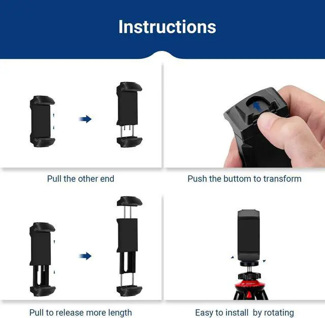 Easy to use 1/4 universal screw hole is suitable for most Selfie sticks, tripod, monopod, table tripod, etc. Very simple Installation, No complex Installation or additional parts to assemble. A lot of use and a lot of joy.