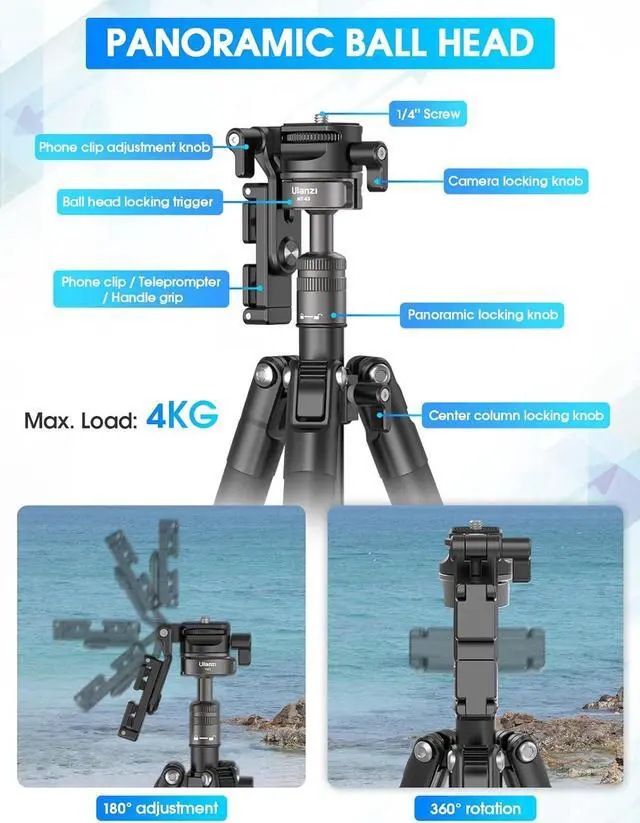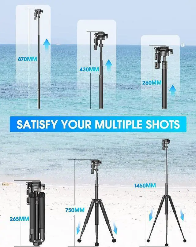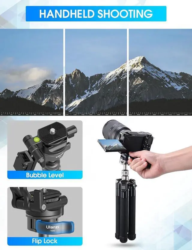 Wide Compatibility: The extendable protable tripod can works as camera tripod or phone tripod, mini and lightweight. Benefiting by the adjustable holder and standard adapter 1/4" screw thread, the vlog tripod is fully compatible with DSLR Camera Nikon Canon G7 Fujifilm Sony RX Panasonic Nikon D610, the photography tripods also works well with iPhone 14/14 plus/14 pro/14 pro max/13 pro/13 pro max/12/11/11 pro/11 pro max/xs/xs max/8, Samsung, Huawei.
