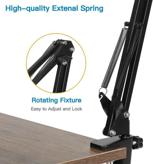 High-quality extennal spring with rotating fixture let you easy to adjust the webcam stand arms to any level and perfect stable locked.