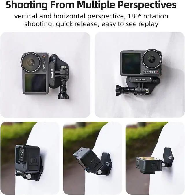 Strong Magnet and Solid Stable This magnetic snap mount can be adsorbed through clothes, backpacks, or directly attached to iron surfaces, refrigerators, etc. Using the included magnet sheet, it can also be attached to smooth surfaces such as interior glass for shooting. Perfect for your outdoor exercises, Mountain biking, baseball, basketball, football, Skiing. Even if it encounters a strong impact, The camera will not fall, Ensuring the safety of the camera.