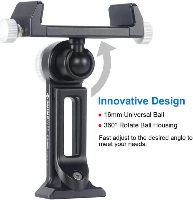 INNOVATIVE DESIGNBallhead joint construction allows you rotate in 360 degrees and tilt in 135 degree for both vertical and horizontal application, also can use the knob to adjust to the desired angle to meet your needs at different angles, flexible "L"-shaped stand design, it can stand on table itself.