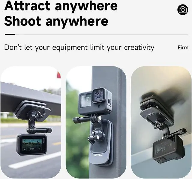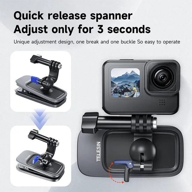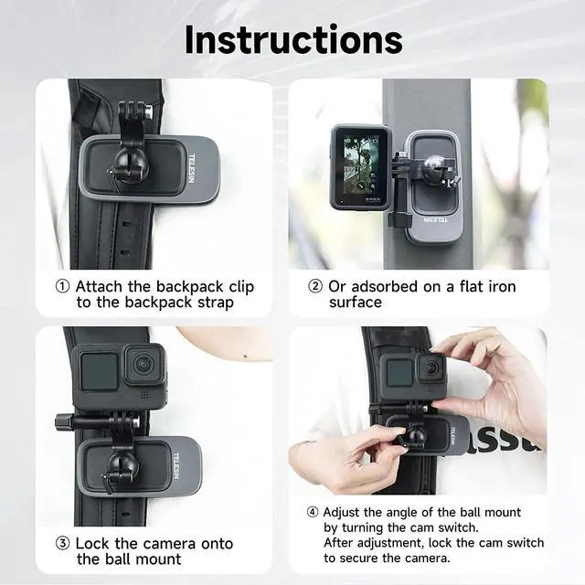 Magnetic Mount + Backpack Mount +Phone ClipThis is TELESINs latest magnetic backpack mount with phone holder, it functions a magnetic clip on metal surface and a bag backpack strap clip mount, multiple use mounting accessories for action camera and mobile.