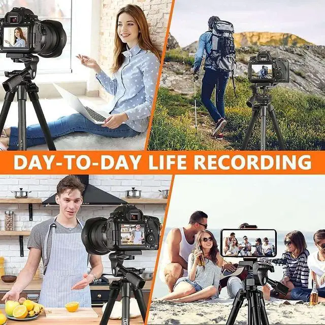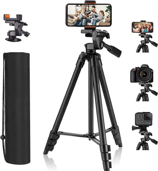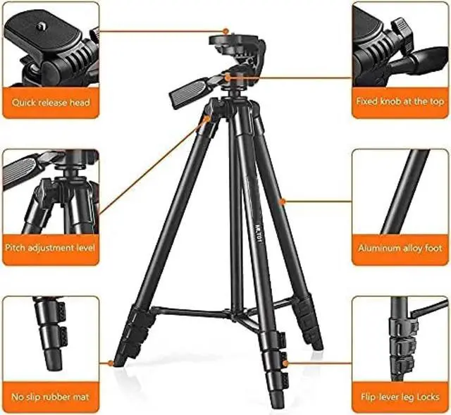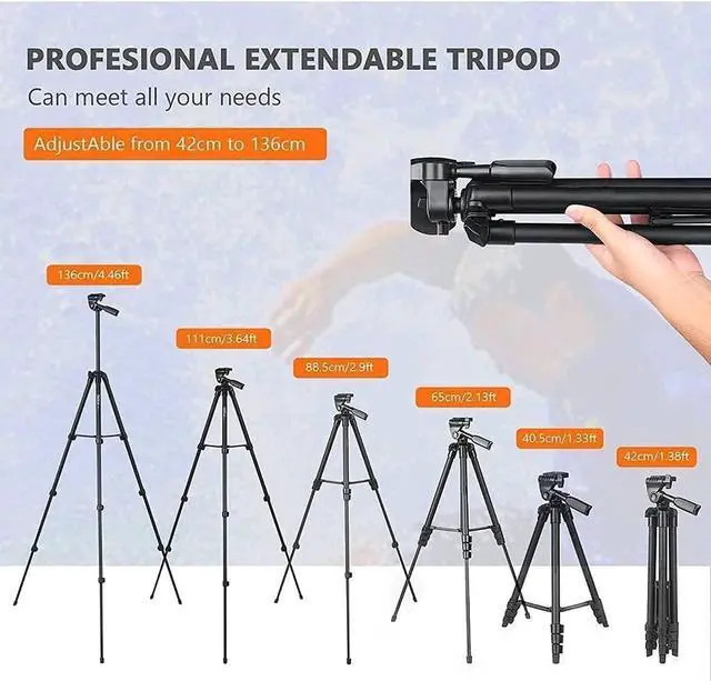 Higher Adjustable Height and Lightweight - 55 inches lightweight tripod is 5 inches longer than other ordinary tripods, can be easily adjusted to your desired height; also can collapse to shorter height-- 16 inches; weighs just one pound.
