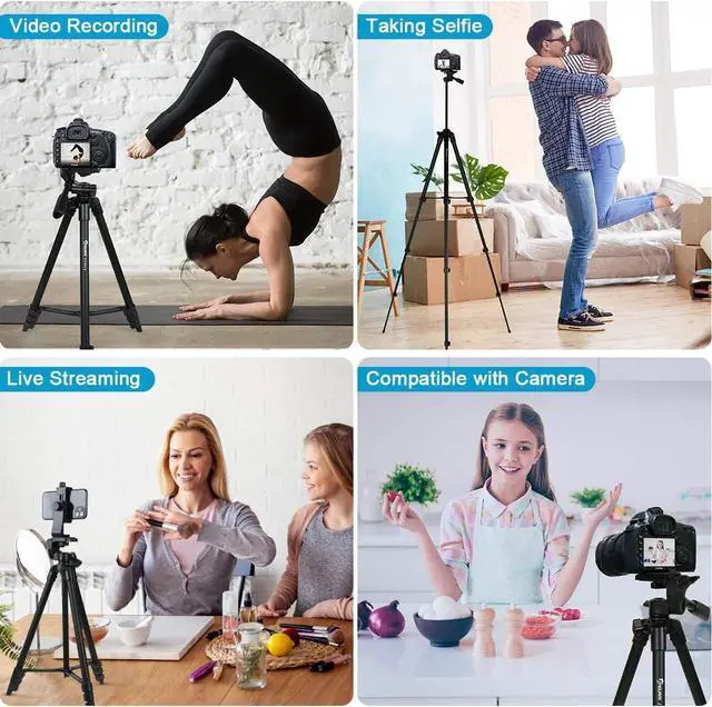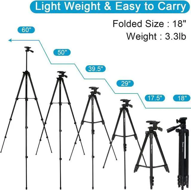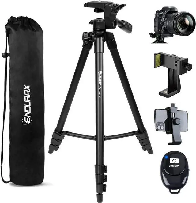 60 HEIGHT & LIGHT WEIGHT - Endurax Phone Tripod weight is only 1.5 lb, measures 18 collapsed and full extended stands up to 60, 4 sections column legs with quick release lever-locks allows you to adjust the height in seconds, compact size to fit your suitcase or backpack, plus a portable travel bag makes it very suitable for outdoor shooting. Take it anywhere you'll be amazed at the lightweight and compact design.
