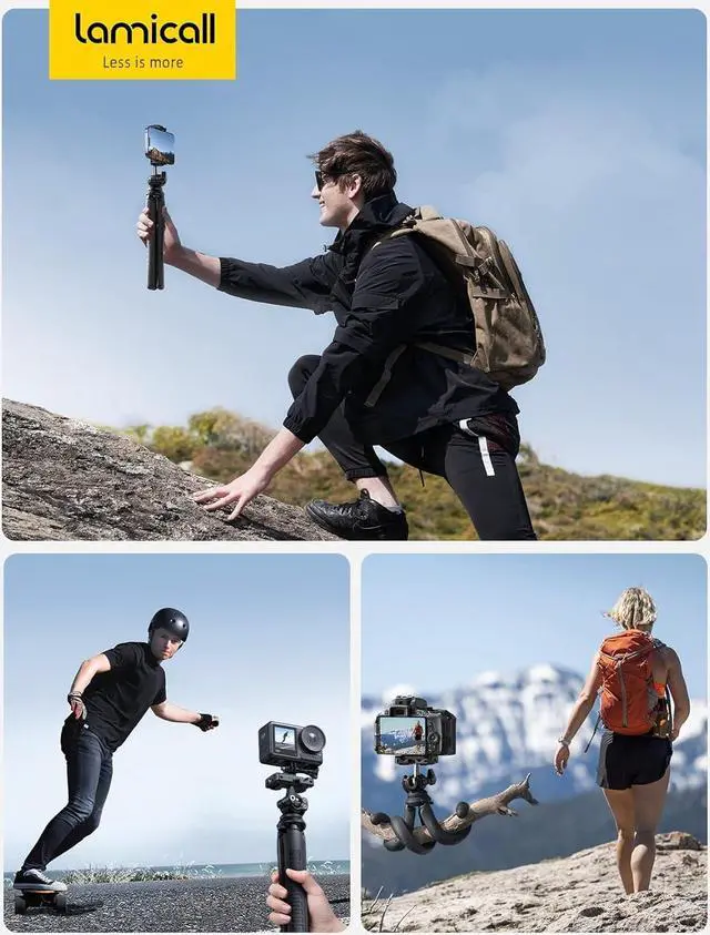 Portable Tripod Selfie StickThis cell phone tripod stand is lightweight, flexible and easy to store, it can easily fit in your pocket, handbag or backpack. It is the perfect accessory for your camera, cell phone, Gopro, it meets all kinds of needs, great for video recording, selfies, parties, weddings, hiking, live streaming and more.