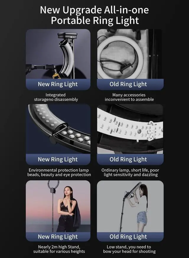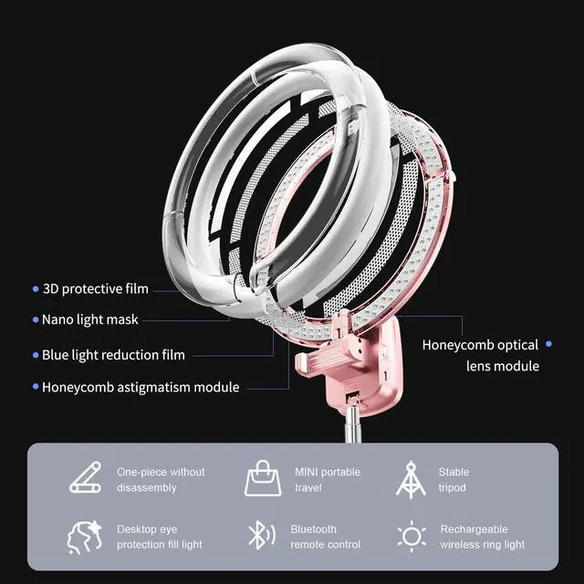 Ultra Portable Ring LightThe ultra-compact wireless ring light designed in 2022 is the first product on the market that allows you to put the ring light and bracket in a box. This new design breaks through the shortcomings of old ring light technology, which resulted in products that were cumbersome to assemble and inconvenient to carry. It can be stored in a drawer when not in use, so you can save a lot of space. This is the first invisible ring light on the market.