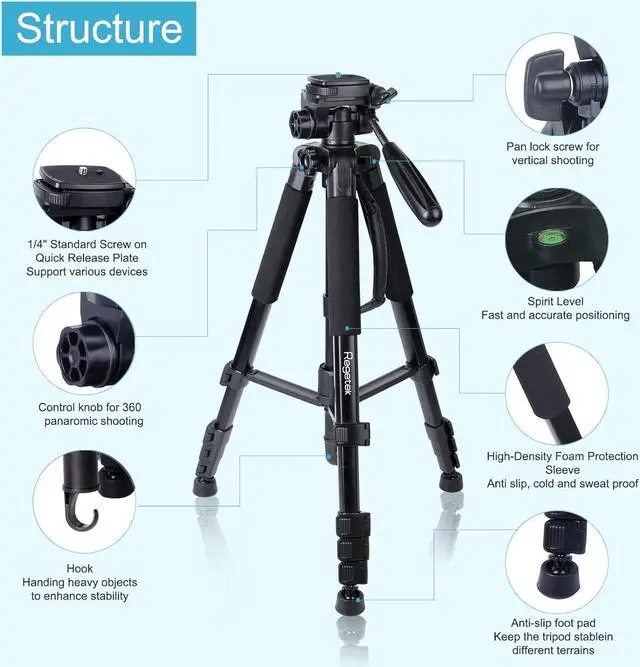 Sturdy Camera TripodMade of high-quality aluminum alloy and ABS material, this tripod stand is sturdy and durable enough to support heavy smartphones, projectors, and cameras. The reinforced triangular structure and Non-slip rubber feet makes the tripod stand more stable and more resistant to wind while outdoors shooting.