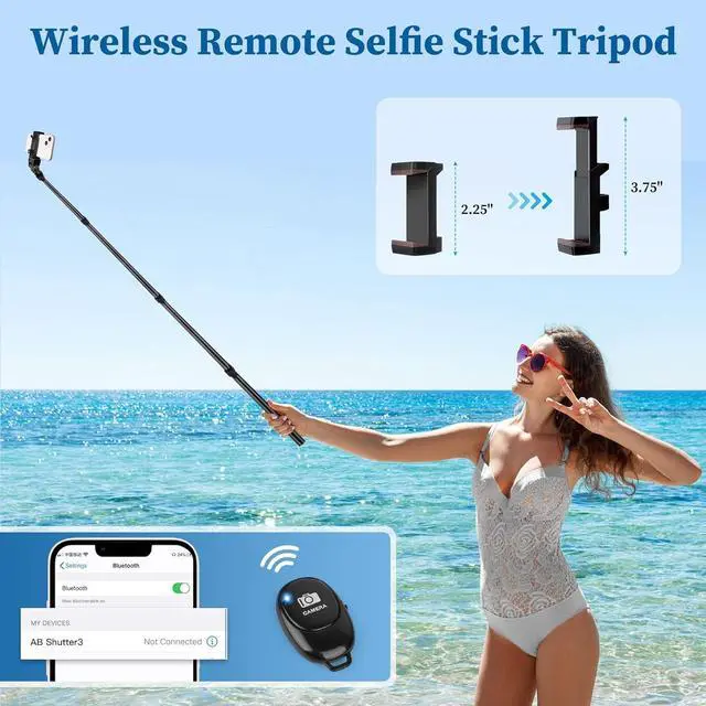 Wireless Remote Tripod 70" tripod for phone is equipped with wireless remote control and a phone holder, you don't need to touch your cellphone to start an easy selfie group photos filming vlogging and steady tripod shots, during parties graduation wedding and exploring places. The phone camera holder for recording remote shutter is compatible with most iOS and Android smartphones (supporting a distance of 10 m / 33 ft), wireless remote control, fast connecting speed, and low energy cost.
