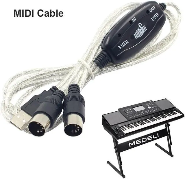 USB IN-OUT MIDI Adapter Cable Set Keyboard Converter Cord PC to Music Electronic Lightweight Portable Music Elements