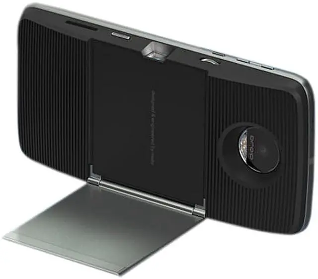 The ultra-thin Moto Insta-Share Projector comes with an integrated kickstand so you can easily project at any angle. Plus, it includes up to one hour of battery life so you can project longer without using your phone's battery.†