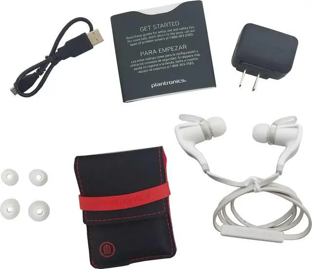 Bluetooth® technology lets you connect to your smartphone or tablet for music, movies, and calls. The P2i military-grade nano-coating protects the earbuds against sweat, moisture, and spills. Inline controls make it easy to take calls, skip tracks, adjust volume, and activate Siri, Google Now, or Cortana voice-controlled smartphone assistants.. Compact design easily slips into your pocket and tangle free cable keeps things simple. Three sizes of cushioned eartips and stabilizers make the fit custom and comfortable for active use and all day wearing. Enjoy your favorite music or movie with up to 4.5 hours of listening and 5 hours of talk time. DeepSleep mode puts buds into hibernation when away from the phone, extending battery readiness up to six months. Headset battery meter automatically shows onscreen for iPhone® and iPad®. Plantronics Battery Meter widget enables a headset battery meter on AndroidTM 3.0 tablets, and Android 4.0 phones and tablets. Features enabled by charging case Fully charged case enables up to 14.5 hours listening time. Press the battery icon on the case and the LED blinks to show you the battery level of the case. Just 20 minutes connected to the charging case adds another hour of listening time.