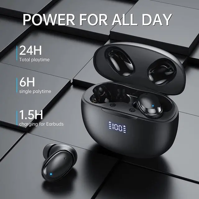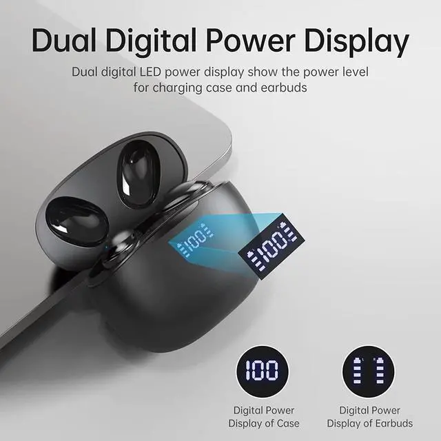 USB C Fast Charging & LED Display - The charging case supports fast charging and can be fully charged in 1.5 hours, providing up to 24 hours of playtime. Equipped with LED digital display, you can check the current power of the charging case and earbuds at any time.
