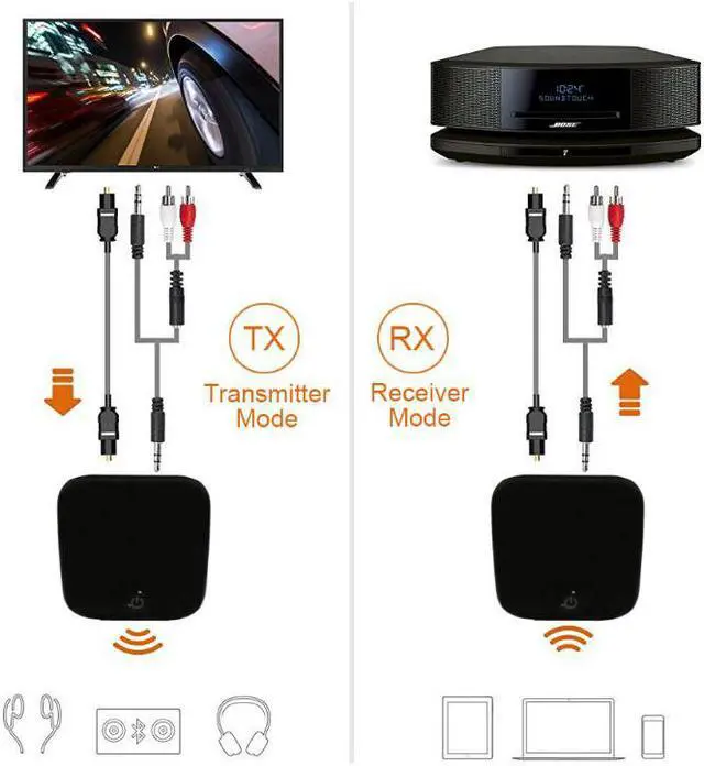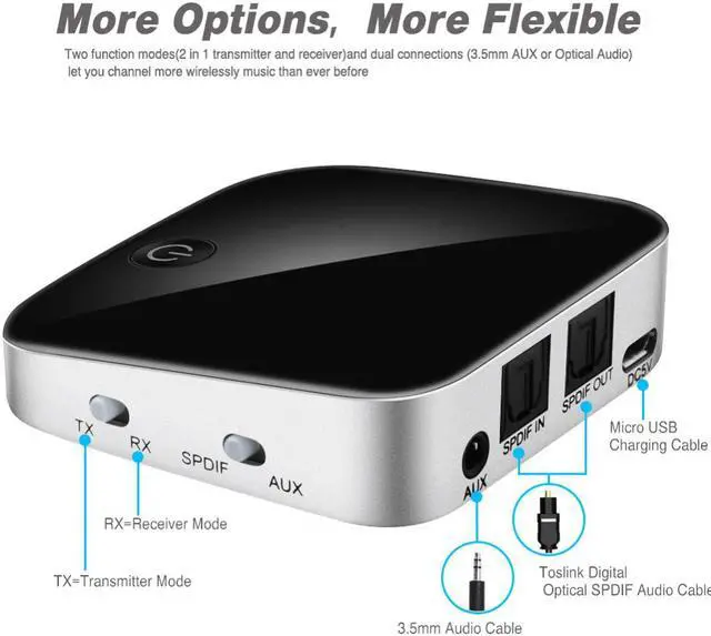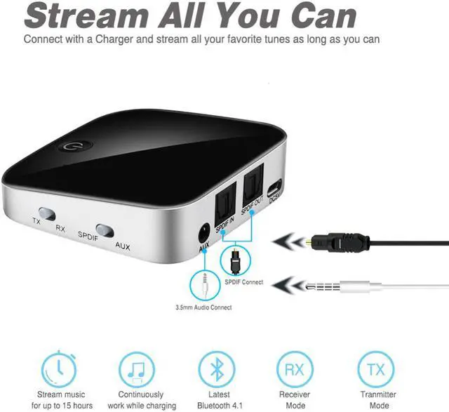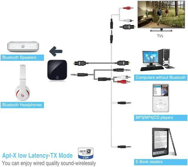 Product Features: Stunning Wireless Sound For Your TV And Music Uses the best Bluetooth 4.1 technology to stream clear, distortion-free digital audio from your TV, smart device or laptop to Bluetooth enabled headphones, speakers, and other receivers up to 33 feet away. Low Latency Audio,