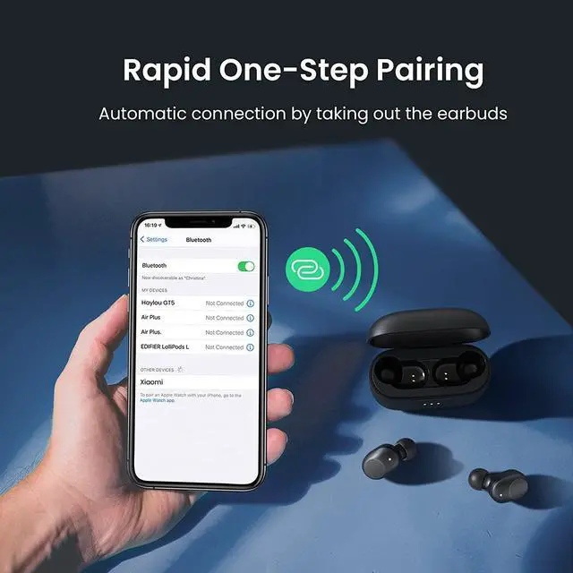 Smart Touch control:Our tws wireless earbuds are equipped with high-sensitivity touch control, Such as answer phones, play/pause/switch songs and call reminder. You can easily control it by a simple tap on the earbuds. Earbuds connects automatically to the paired devices instantly.