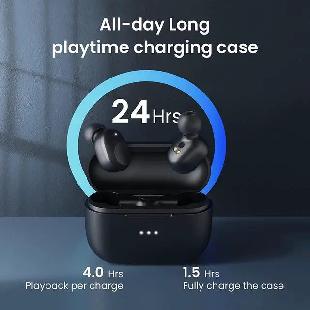 All-day Battery Life: Bluetooth earphones playtime lasts for over 4 hours from single charge and total 28 hours with charging case, you can choose to use USB-C charging or wireless charger charging, choose the way you want anytime, anywhere.