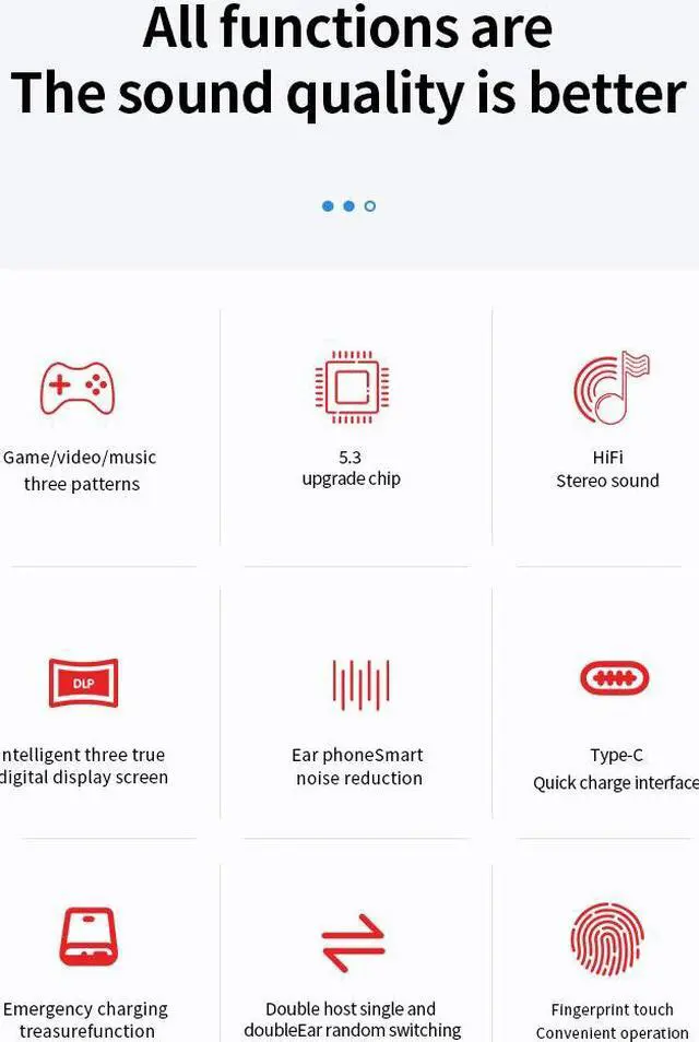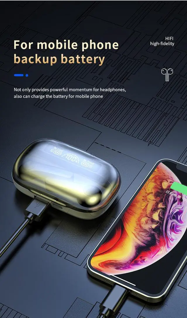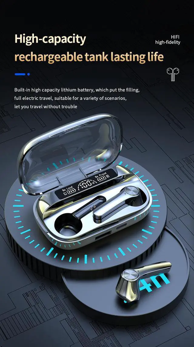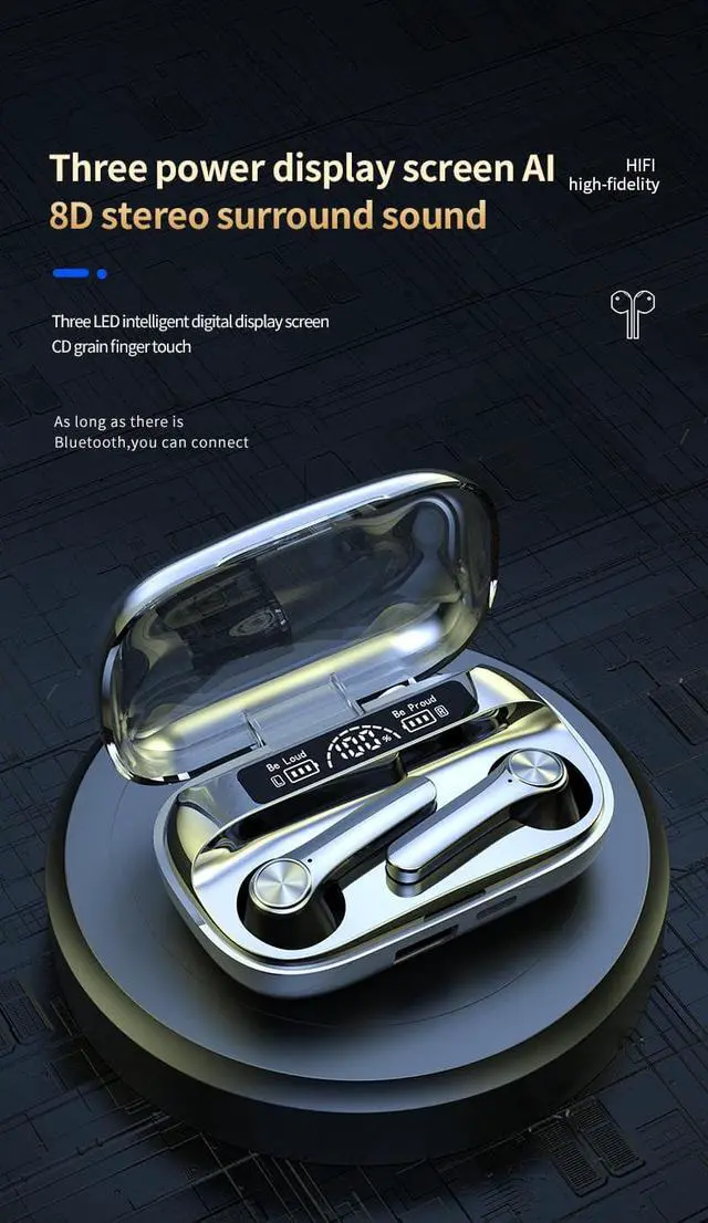 LED Digital DisplayDual digital LED power display outside of the case is to show the power level for charging case and bluetooth headphones. When charging for the case, the LED light will start to flash from 1 to 100.