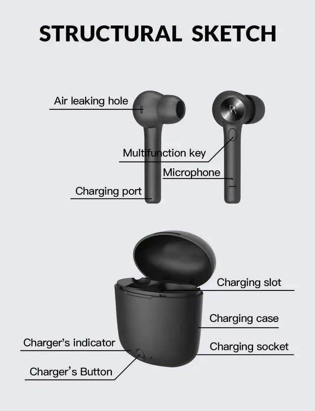 First step - Open the charging case, long-press the multi-function button respectively, click any one of the earphones, the two earphones can be paired quickly.