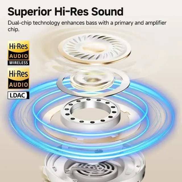 Bluetooth 5.4 & Crystal Clear CallsAdvanced Bluetooth 5.4 technology enables faster transmission speeds and stable connectivity for smooth music playback. Featured with 3 microphones with Al, it enhances voice pick-up over the noise to ensure you sound crystal clear on the other end.