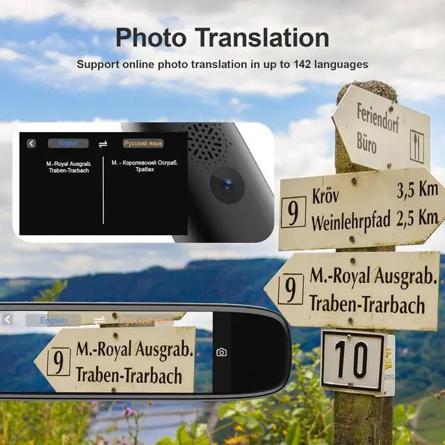Photo TranslationElectronic translation pen is equipped with a high-definition camera, supports online photo translation in up to 142 languages. Simply take a photo, making it easier for you to read menus/signposts/magazines/labels in different languages.