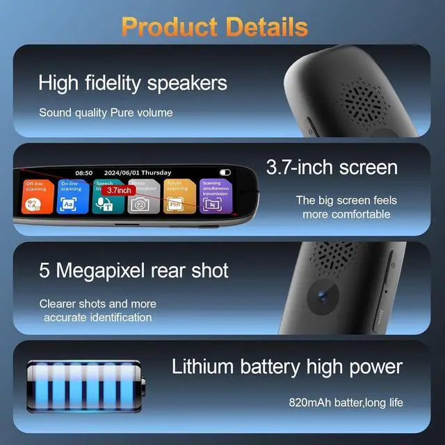 Small and Compact Our Translator Pen Scanner is small and compact, making it be easily carried in pockets and backpacks, suitable for portable use during business trips, vacations, or study sessions.